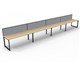 Deluxe Rapid Infinity 4 Person Single Sided Workstation - With Screen Natural Oak Worksurface With 410mm W x 50mm D Scallop Cable Access 7200mm W x 780mm D x 730mm H ( Overall ) 1800mm W x 750mm D x 730mm H Per User 60mm x 45mm Beveled Edge Loop Leg Underframe In Black P/C 495mm H x 30mm T Pinnable Privacy Screen Upholstered In Grey Fabric With Matching Black P/C Extrusion Dual Cross Bar For Added Stability E0 Enviroboard Melamine Worksurface Adjustable leveling Feet 5 Year Warranty AFRDI Certified