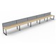 Deluxe Rapid Infinity 5 Person Single Sided Workstation - With Screen Natural Oak Worksurface With 410mm W x 50mm D Scallop Cable Access 7500mm W x 780mm D x 730mm H ( Overall ) 1500mm W x 750mm D x 730mm H Per User 60mm x 45mm Beveled Edge Loop Leg Underframe In Black P/C 495mm H x 30mm T Pinnable Privacy Screen Upholstered In Grey Fabric With Matching Black P/C Extrusion Dual Cross Bar For Added Stability E0 Enviroboard Melamine Worksurface Adjustable leveling Feet 5 Year Warranty AFRDI Certified