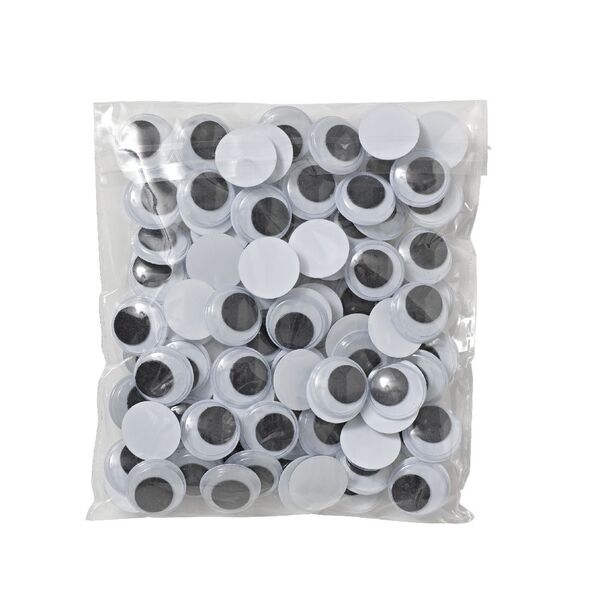The pack contains 100 joggle eyes that are 15 mm in diameter