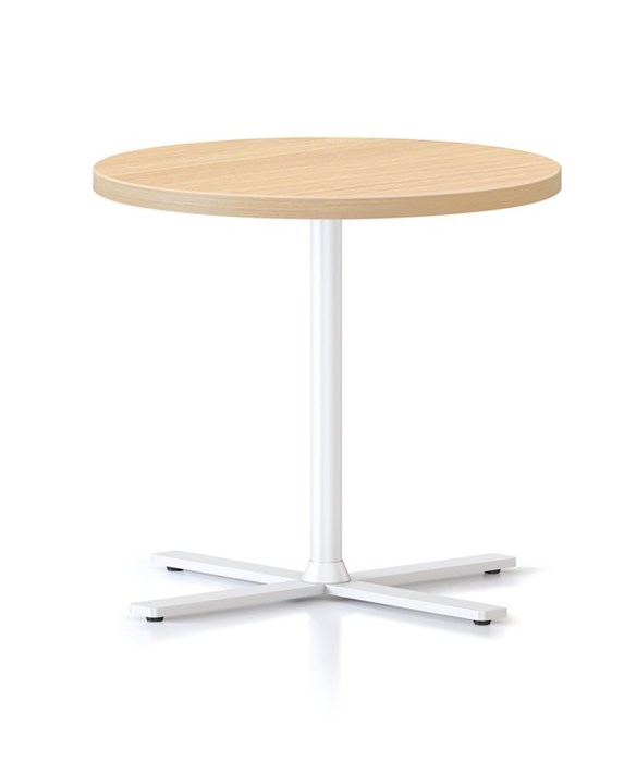 Kolo Side Table 500mm Dia x 457mm H 25mm T Natural Oak Table Top 4 Leaf Cross Base Underframe Finished In White P/C Adjustable Leveling Feet E0 Enviroboard Melamine Worksurface Note: Order With 587mm H Kolo Table To Create A Nesting Pair 5 Year Warranty