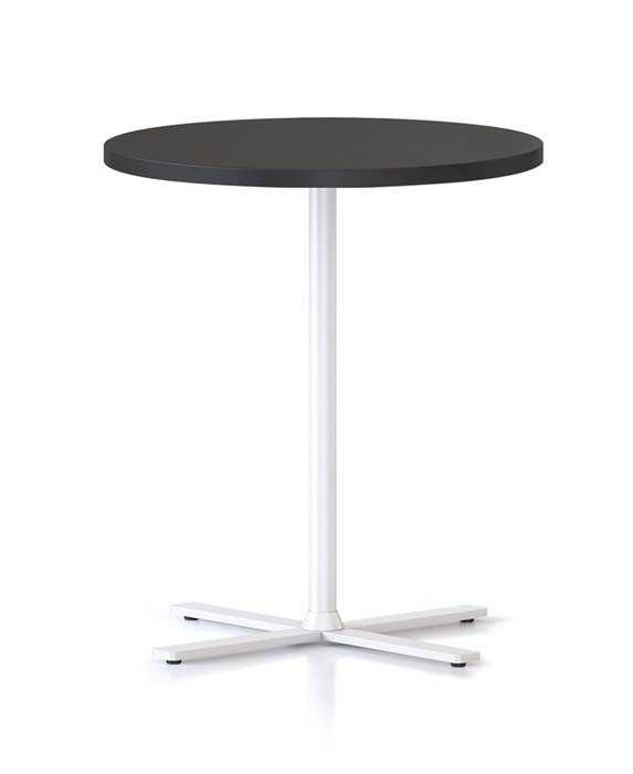 Kolo Side Table 500mm Dia x 587mm H 25mm T Black Table Top 4 Leaf Cross Base Underframe Finished In White P/C Adjustable Leveling Feet E0 Enviroboard Melamine Worksurface Note: Order With 457mm H Kolo Table To Create A Nesting Pair 5 Year Warranty