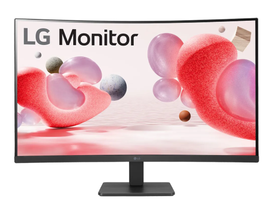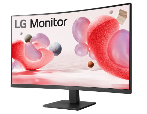 The LG 32-Inch Curved FHD Monitor offers an engaging viewing experience with its wide 32-inch curved screen, designed to reduce eye strain and provide a more natural field of view