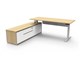 The integrated side cabinet provides convenient storage with drawers and cupboards, enhancing workspace organisation and efficiency.