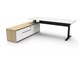 The integrated side cabinet provides convenient storage with drawers and cupboards, enhancing workspace organisation and efficiency.