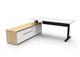 The integrated side cabinet provides convenient storage with drawers and cupboards, enhancing workspace organisation and efficiency.