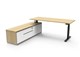 The integrated side cabinet provides convenient storage with drawers and cupboards, enhancing workspace organisation and efficiency.