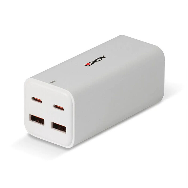 The Lindy 100W 4-Port USB Charger provides reliable high-speed charging for multiple devices simultaneously