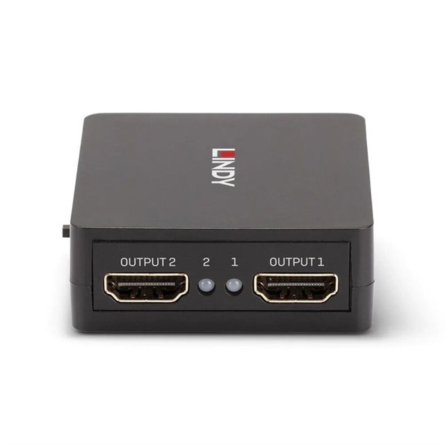 The Lindy 2 Port HDMI 18G Splitter is a durable, miniature HDMI 2.0 device that replicates a single HDMI input across 2 HDMI outputs