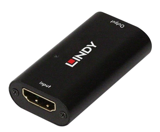 The Lindy 40m HDMI 2.0 18G Repeater boosts and extends HDMI signals, ensuring stable transmission over long distances