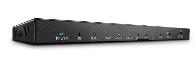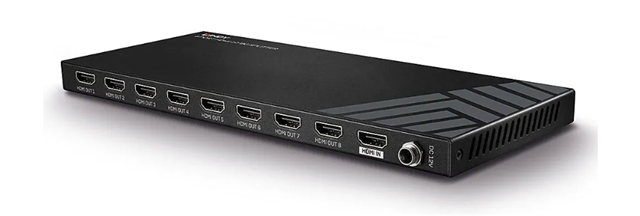 The Lindy 8-Port HDMI Splitter allows a single HDMI source to be distributed to up to eight displays simultaneously