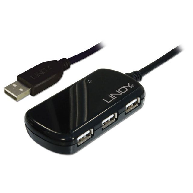 The LINDY USB 2.0 Active Extension Pro Hub extends the cable length of up to 4 USB 2.0 devices by 8m