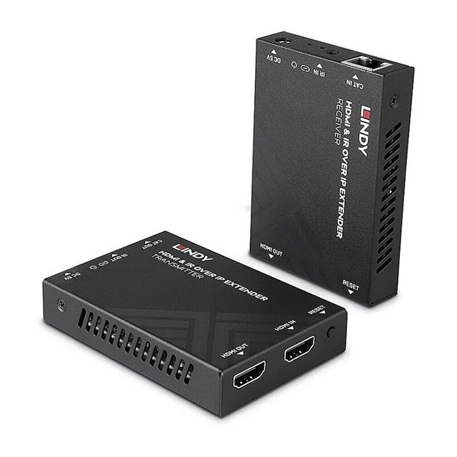 The Lindy HDMI & IR Over IP Extender enables HDMI signals to be transmitted over standard IP networks, making it an ideal solution for long-distance AV distribution