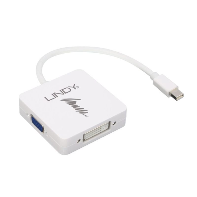 The Lindy Mini DisplayPort to HDMI, DVI and VGA Converter allows users to connect either a HDMI, DVI or VGA screen to a Mini Displayport source