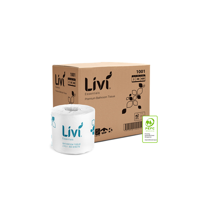 Livi 1001 Essentials Embossed 2 Ply Toilet Paper 400 Sheets Carton 48 (40 per Pallet) Adelaide Direct Stationers