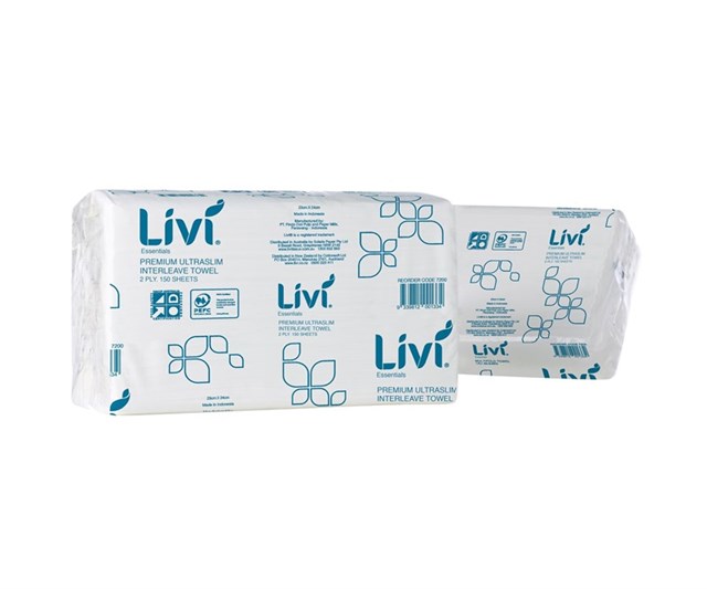 Livi 1415 Essentials Ultraslim 2 Ply Towel 150 Sheets Carton 16 (64 per Pallet) Adelaide Direct Stationers