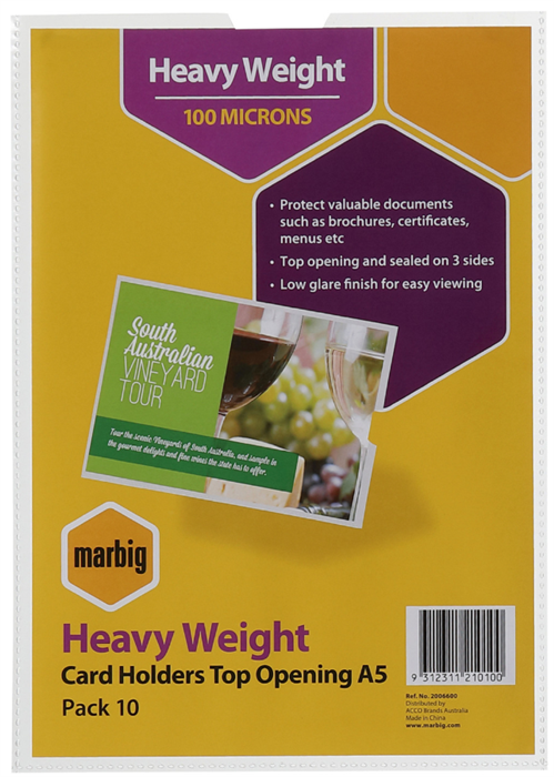 Keep smaller documents protected and presentable with the Marbig Card Holder A5 Clear Pack of 10