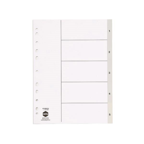 Marbig Dividers 1 to 5 Tab PP A4 Grey Adelaide Direct Stationers
