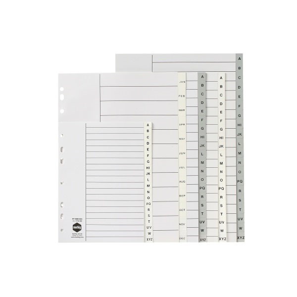 Tabs are printed A to Z for alphabetical filing and are available in grey or white