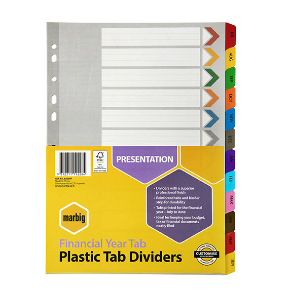 Marbig Dividers Financial Year Tab Reinforced A4 Assorted Adelaide Direct Stationers