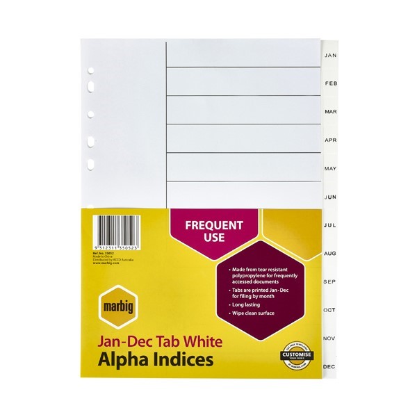 Marbig Dividers Jan to Dec Tab PP A4 White Adelaide Direct Stationers