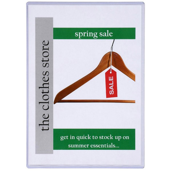 Excellent protection for certificates, menus and display material made from crystal clear, high quality, rigid PVC Sealed on 3.