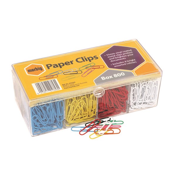 Marbig Paper clip comes complete in a sturdy plastic reusable container with compartments for each colour.