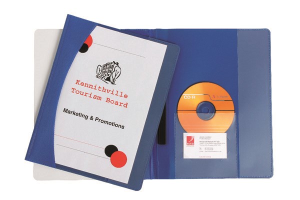 Inside back cover with vertical pocket, cd and business card holder