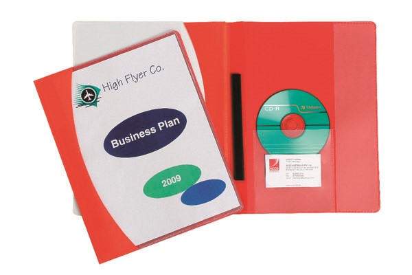 Marbig Premier Insert Flat File A4 Clear Front Red (Sold as Each, 10 in a Pack) Adelaide Direct Stationers