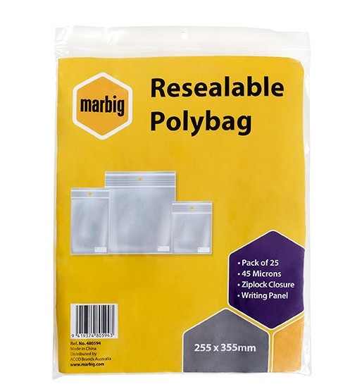 Marbig Resealable Poly Bags 255x355mm 25Pack Adelaide Direct Stationers