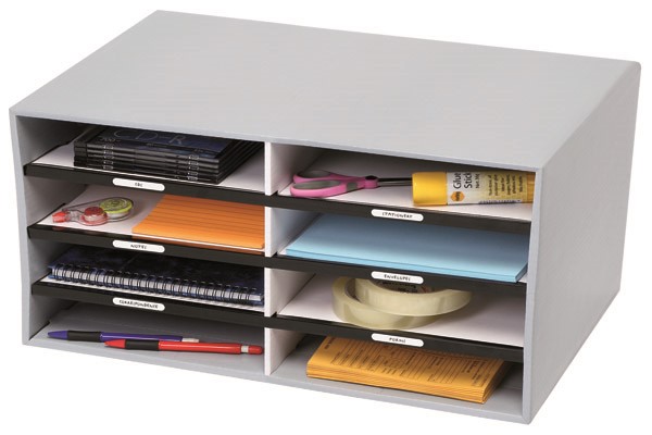 This sort and store has 8 handy compartments for file storage, shelving space or use as pigeon holes.