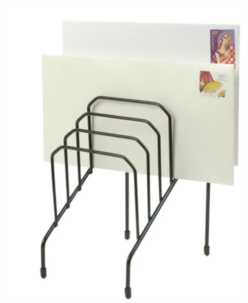 Chrome plated with protective rubber feet graduated slots for holding mail, folders, loose papers, etc small - 6 graduated slots.