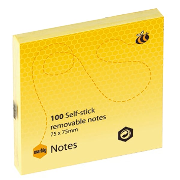 Marbig Stick On Notes 76 x 76mm Yellow Each (Sold as Each, 12 in a Pack) Adelaide Direct Stationers
