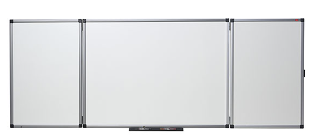 The two front hinged boards are drywipe both sides, giving five working surfaces in total