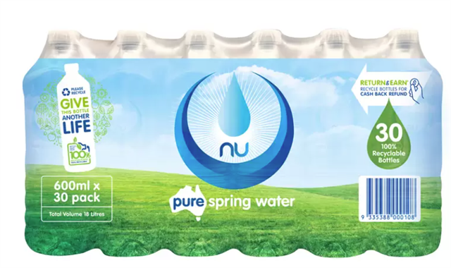 Nu-Pure Spring Water 30 x 600ml Adelaide Direct Stationers