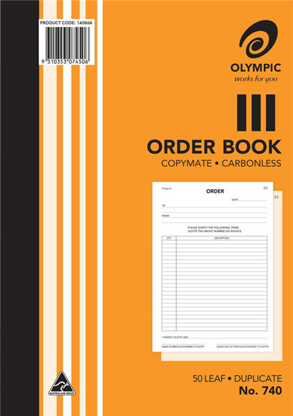 Olympic 740 Carbonless Order Book Duplicate (Sold as Each, 5 in a Pack) Adelaide Direct Stationers