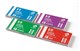 Books come lettered A to F in red, orange, green, blue, purple and black