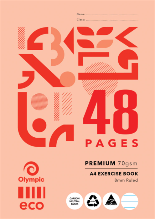 Olympic Eco Exercise Book A4 8mm 48 Pages (Sold as Each, 20 in a Pack) Adelaide Direct Stationers