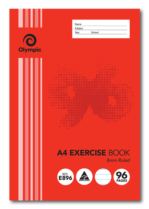 Olympic Exercise Book 96 Pages A4 Stapled 8mm (Sold as Each, 10 in a Pack) Adelaide Direct Stationers