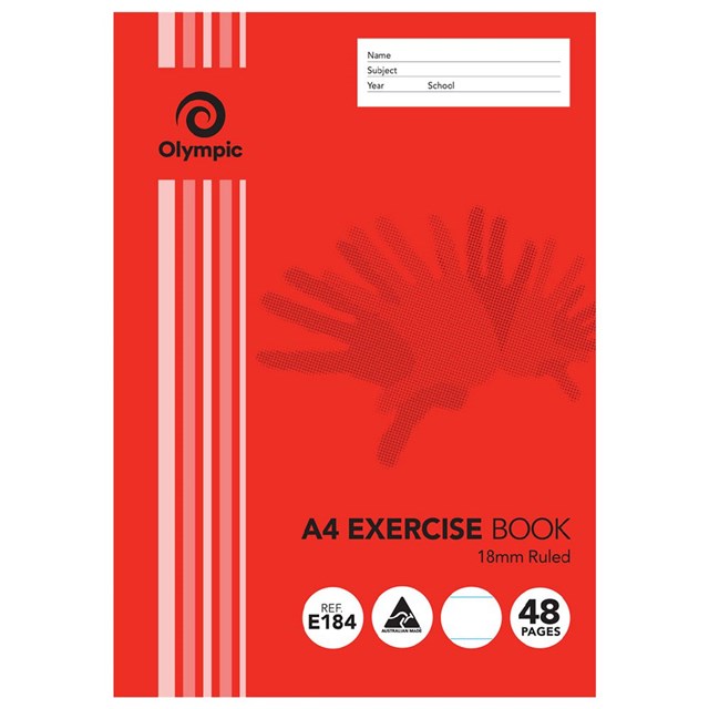 Olympic Exercise Book A4 48 Pg 18mm Ruled Margin (Sold as Each, 20 in a Pack) Adelaide Direct Stationers