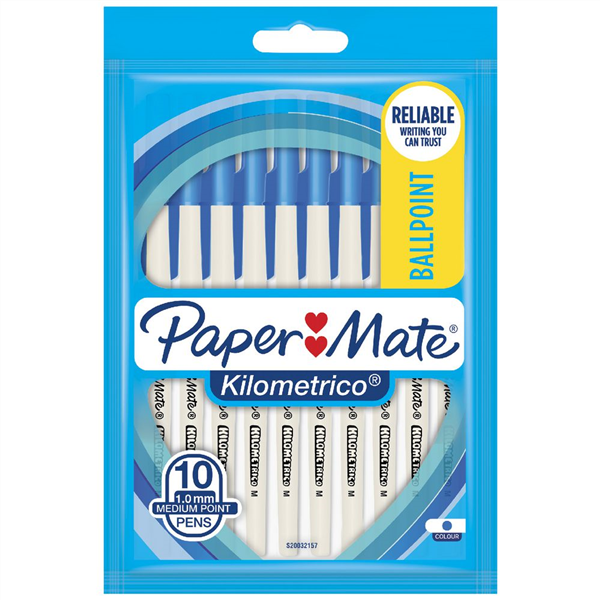 Paper Mate Kilometrico Capped Ballpoint Pen Blue 10 Pack Adelaide Direct Stationers