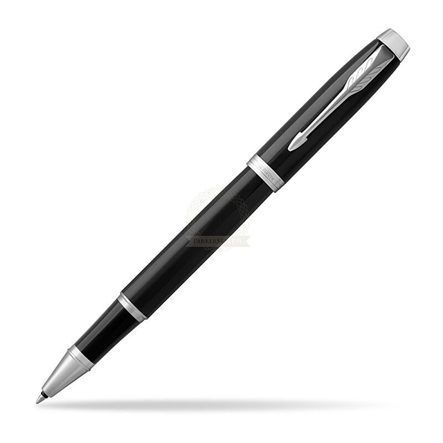The Parker IM Black CT Roller Ball Pen features a durable metal construction with a sophisticated matte black lacquer finish complemented by polished Chrome Trim (CT)