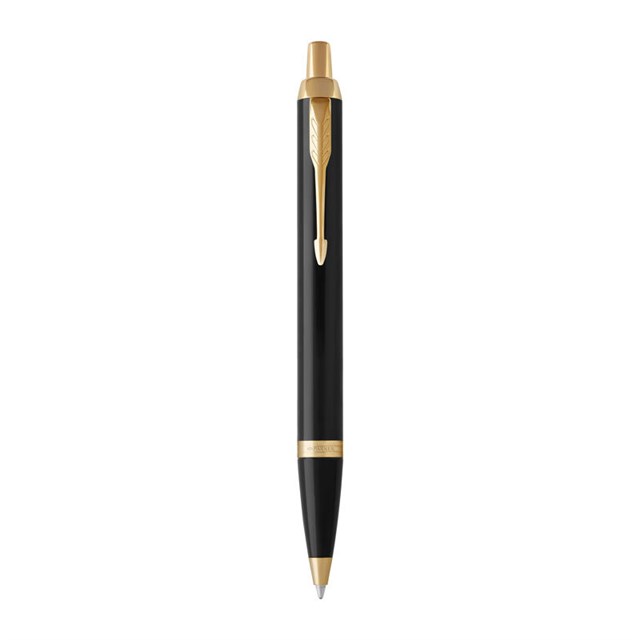 Parker IM Black Gold Fnsh Trim BP Pen Med Blue Tip is smart, polished and established