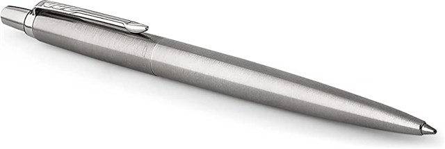 Classic Parker Jotter ballpoint pen featuring a stainless steel body and chrome trim.