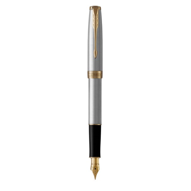 Parker Sonnet Stainless Steel Gold Trim Fountain Pen is Parkers symbol of elegance