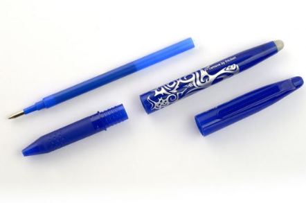 The heat generated by friction when rubbing the paper with the special tip turns the ink invisible