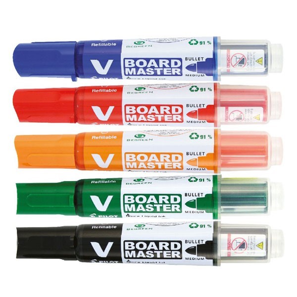 The Pilot Begreen V Board Master markers deliver light, resistant bright ink that can be seen from 10 M away