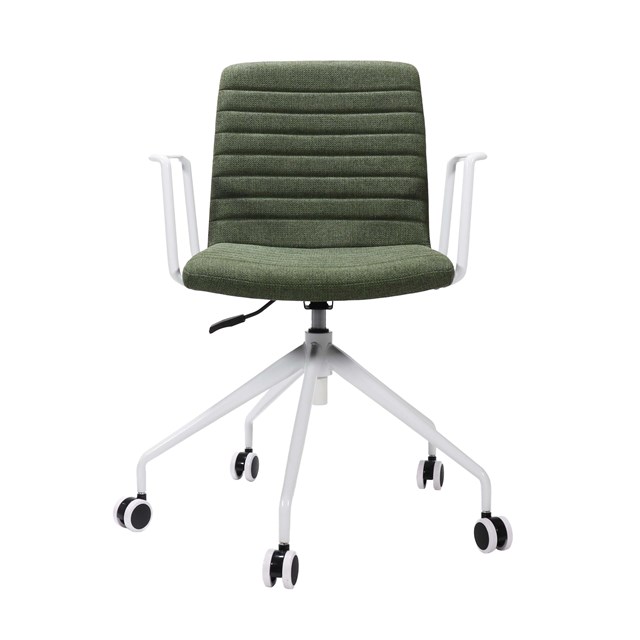 **ASSEMBLED** Pixel 5 Star Breakout & Meeting Chair *With Arms* - Olive/White 630mm W x 630mm D x 830mm-875mm H ( Overall ) Olive Fabric Upholstery With Ribbed Stitching Detail Includes Set Of 2 Fixed Height Loop Arm Rests Finished In White P/C 5 Star Base & Gas Strut Finished In White P/C Gas Lift Height Stroke: 45mm Seat Width: 450mm Seat Depth: 420mm Back Height: 380mm Back Width: 450mm - 370mm Seat Height: 470mm-515mm 120 Kg Weight Rating 5 Year Warranty