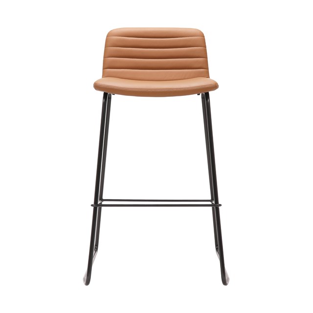 Featuring a comfortable leather seat with ribbed stitching detail and a sturdy powder-coated sled base, this stool offers both style and support