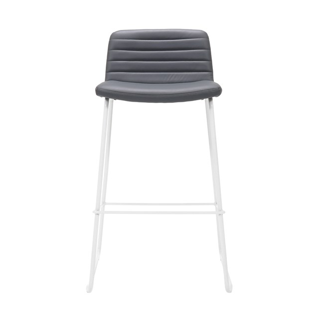 Featuring a comfortable leather seat with ribbed stitching detail and a sturdy powder-coated sled base, this stool offers both style and support