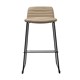 This modern stool boasts a comfortable leather seat with ribbed stitching detail and a strong powder-coated sled base with a foot rail